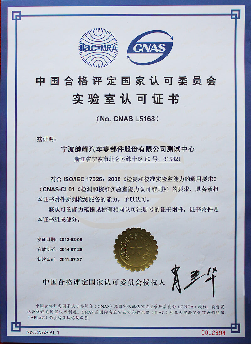 公司實驗室通過國家認可委ISO17025國家實驗室認可;