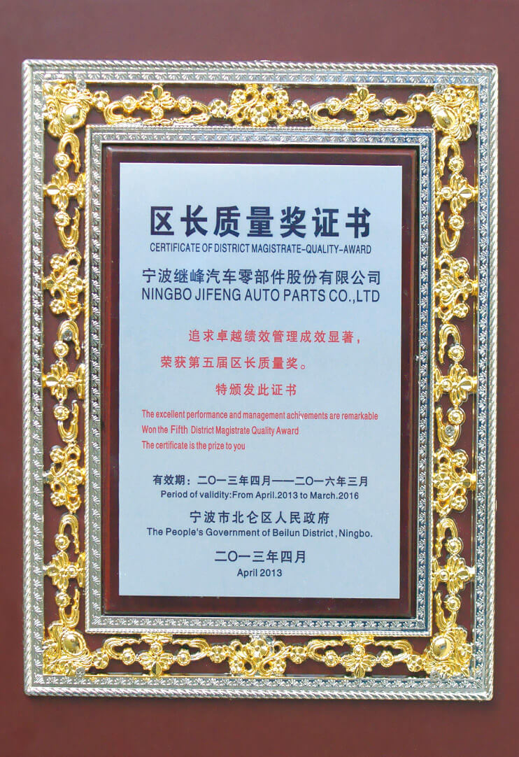 公司獲得北侖區(qū)“區(qū)長質(zhì)量獎”;