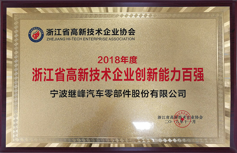 公司榮獲“2018年度浙江省高新技術(shù)企業(yè)創(chuàng)新能力百強”榮譽稱號;