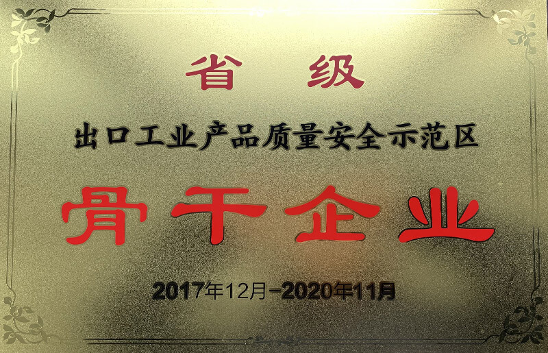 公司榮獲“省級出口工業(yè)產(chǎn)品質(zhì)量安全示范區(qū)骨干企業(yè)”榮譽稱號;